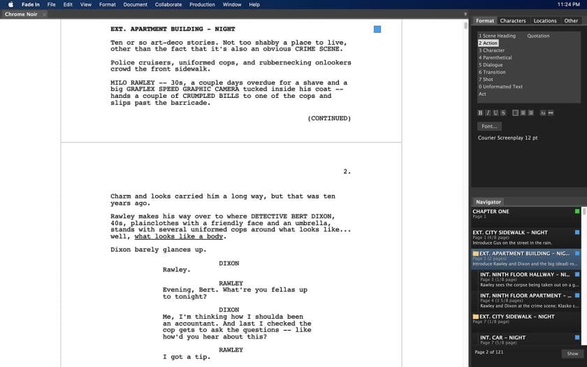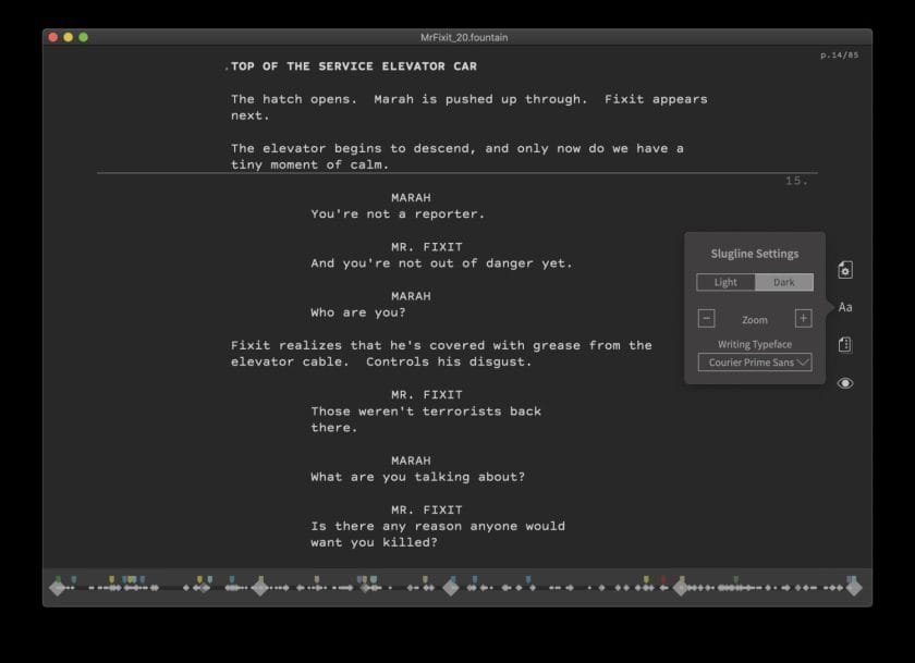 É uma boa opção para quem aprecia a elegância e simplicidade que caracterizam o Mac, optou pelo Fountain como formato base de trabalho, e não quer ceder em termos de recursos e compatibilidade (é claro que o Beat faz tudo isso e é grátis, por isso…).