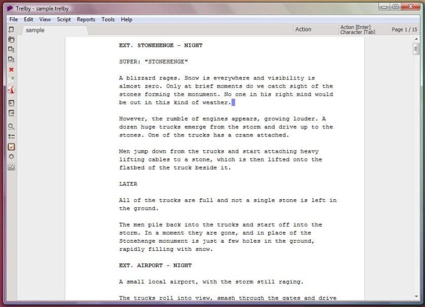 Uma das suas características mais fortes é que mesmo a versão grátis tem todas as opções necessárias de importação e exportação entre muitos formatos. Até importa guiões a partir de pdfs criados por outros programas, o que não é comum e pode ser útil em algumas situações.